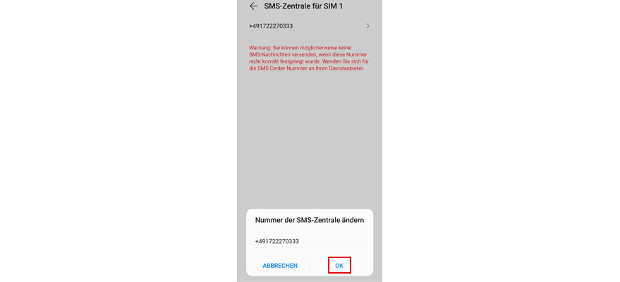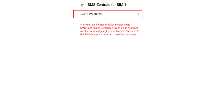 Tipp auf die Nummer unter SMS-Zentrale für SIM 1.