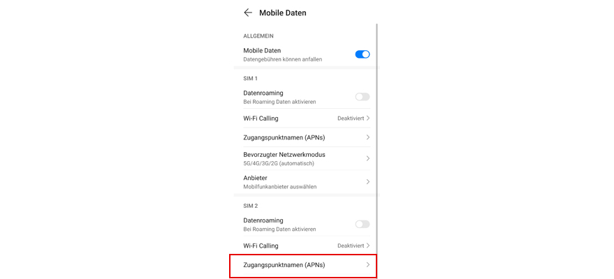 Wähl Mobile Daten.