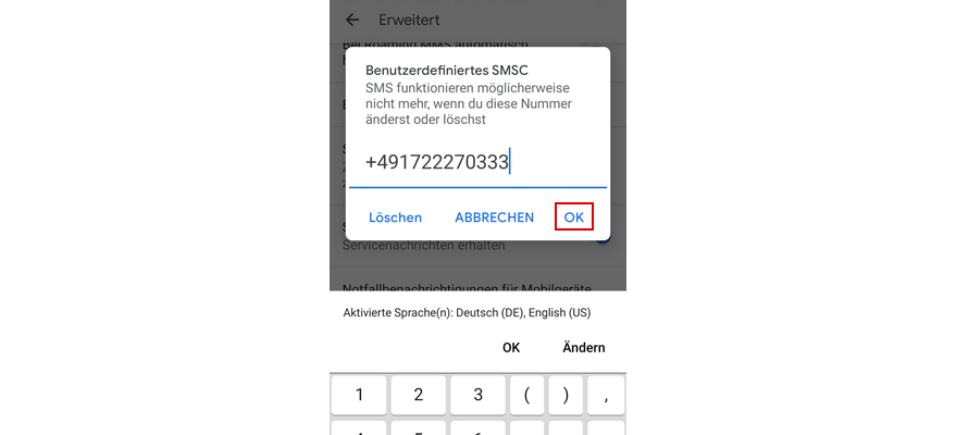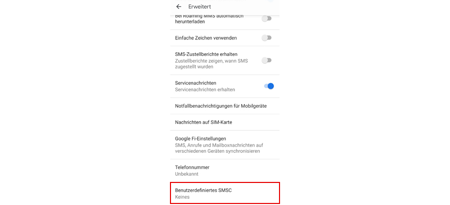 Wähl Benutzerdefiniertes SMSC.