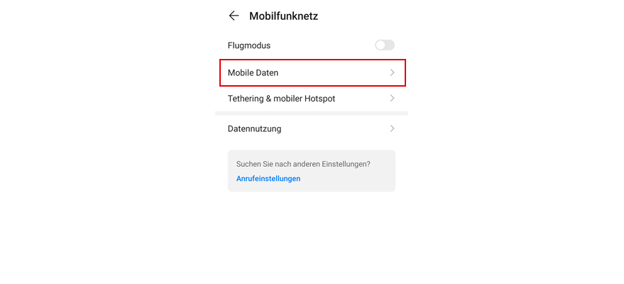 Wähl Mobile Daten.