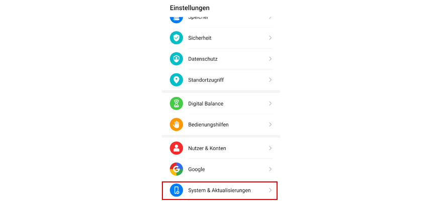 Wähl System & Aktualisierungen.