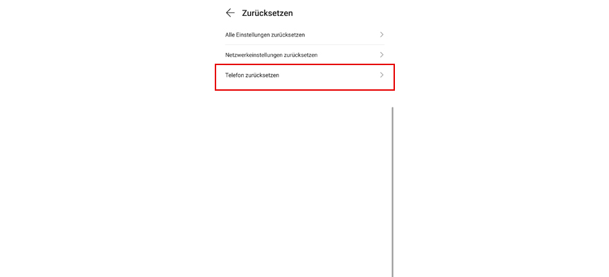 Wähl Zurücksetzen. Hinweis: Alle Daten werden aus dem Telefonspeicher gelöscht.
