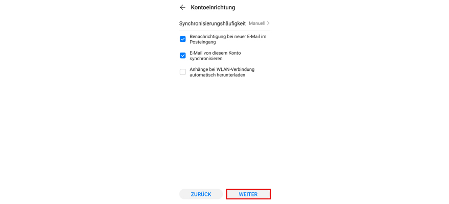 Optional: Änder bei Bedarf die Synchronisationseinstellungen. Tipp dann auf Weiter.