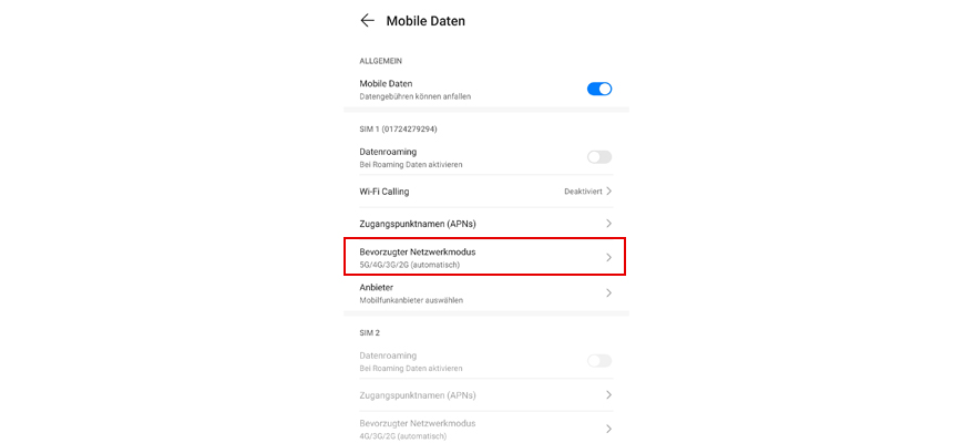 Wähl Bevorzugter Netzwerkmodus.