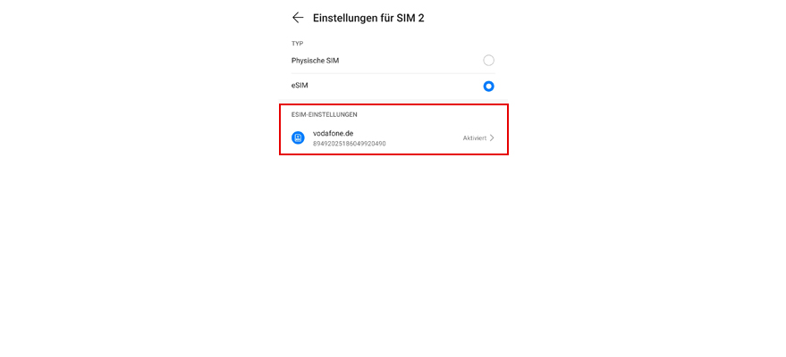 Wähl eSIM aus.
