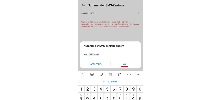 Gib +491722270333 ein. Tipp dann auf OK.