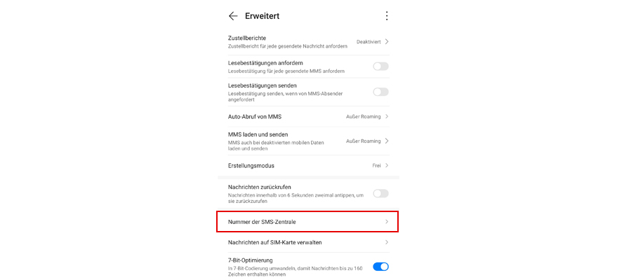 Wähl Nummer der SMS-Zentrale.