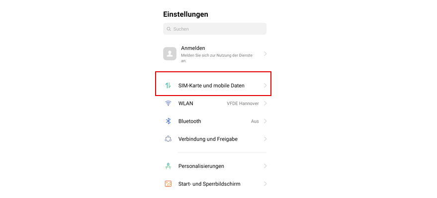 Wähl SIM-Karte und mobile Daten.