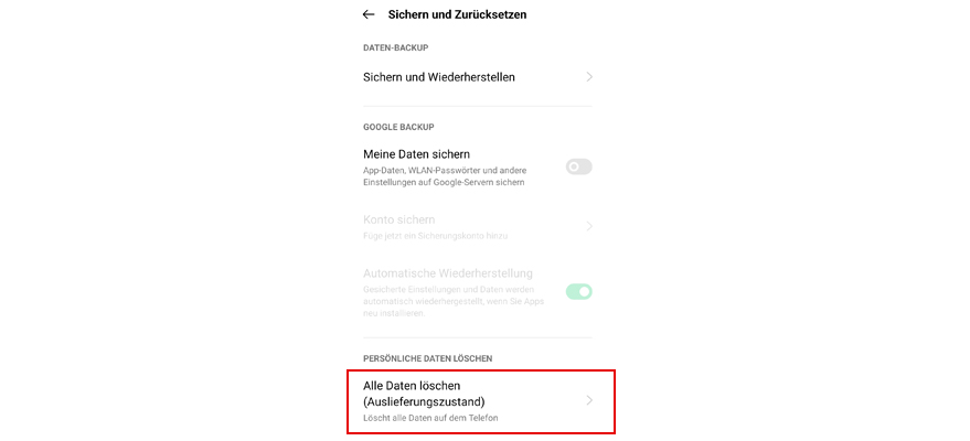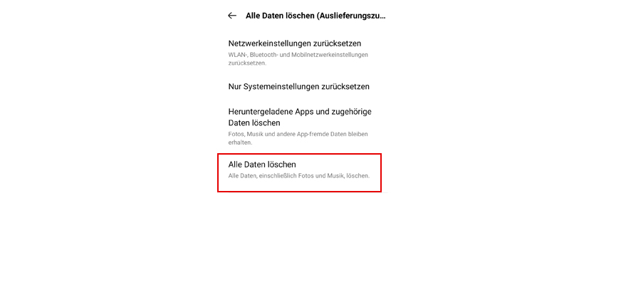 Wähl Alle Daten löschen (Auslieferungszustand).