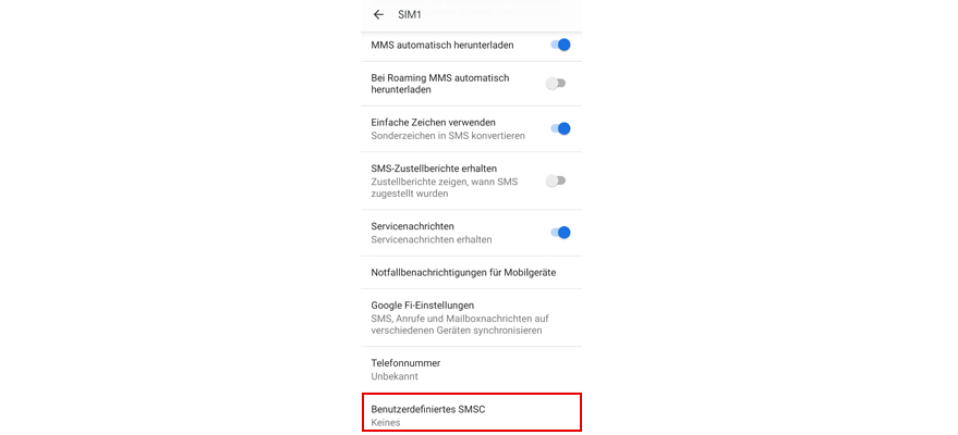 Wähl Benutzerdefiniertes SMSC.