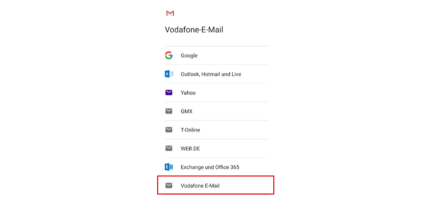 Wähl Vodafone E-Mail.