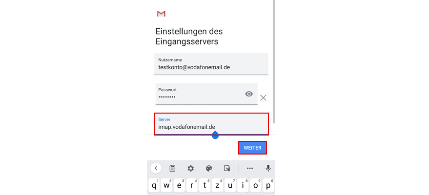 Gib unter Server imap.vodafonemail.de ein.