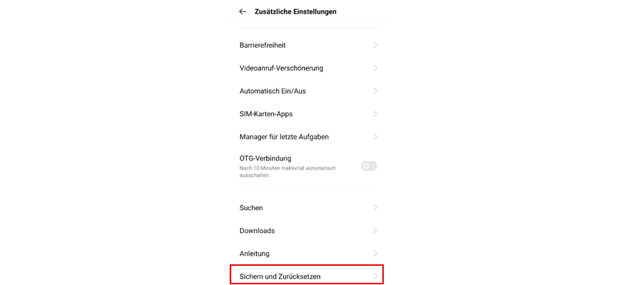 Wähl Sichern und Zurücksetzen.