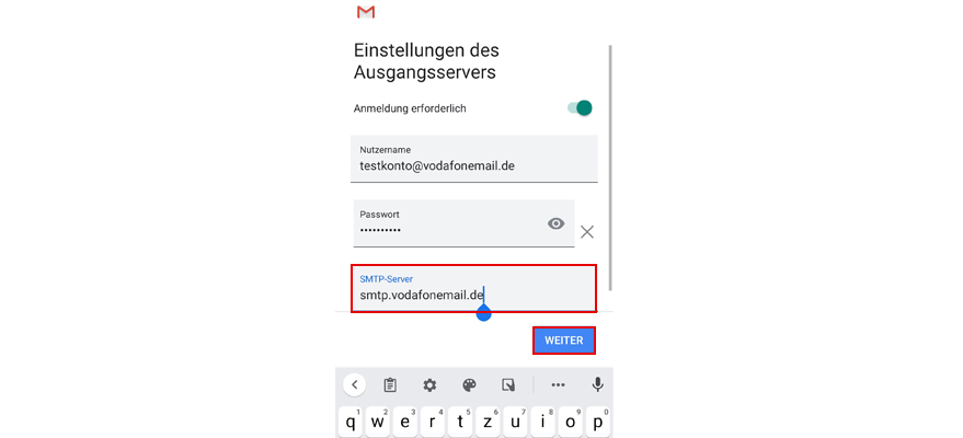 Gib unter SMTP-Server smpt.vodafonemail.de ein.