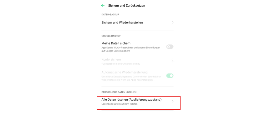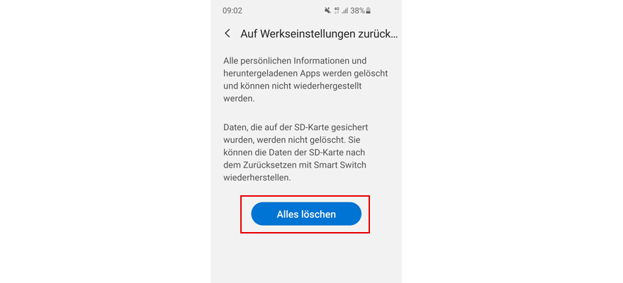 Wähl Alle Daten löschen (Auslieferungszustand).