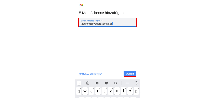 Gib unter SMTP-Server smpt.vodafonemail.de ein.