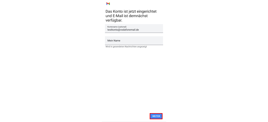 Dein Konto ist jetzt auf Deinem Smartphone eingerichtet und E-Mail demnächst verfügbar.