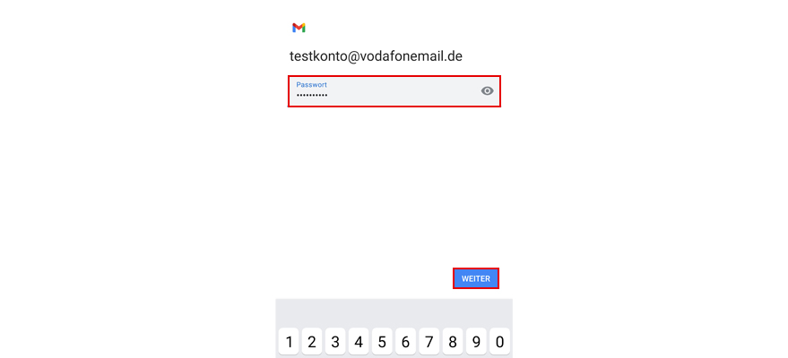 Gib das Passwort Deiner Vodafone E-Mail-Adresse ein. Und wähl dann Weiter.
