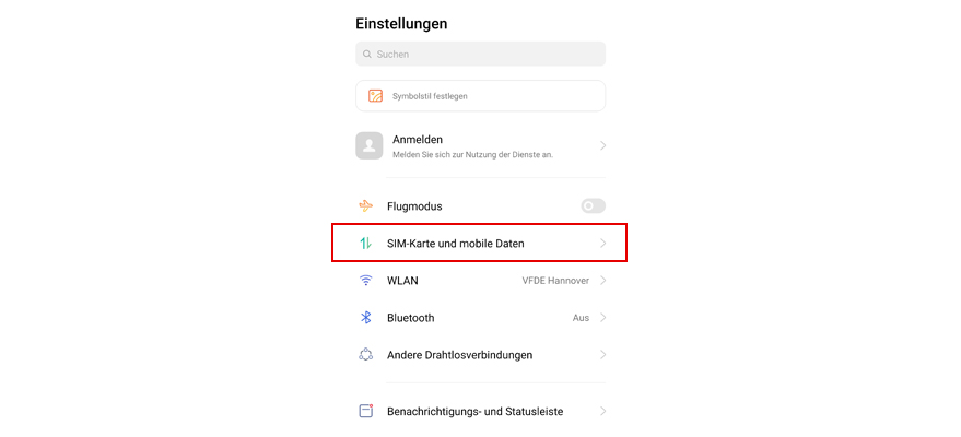 Wähl SIM-Karte und mobile Daten.