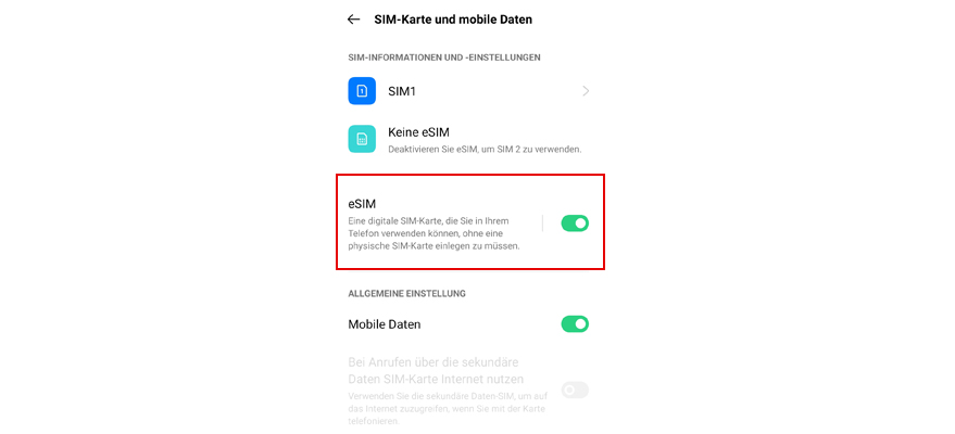 Aktivier den Schieberegler neben eSIM. Tipp dann auf eSIM.