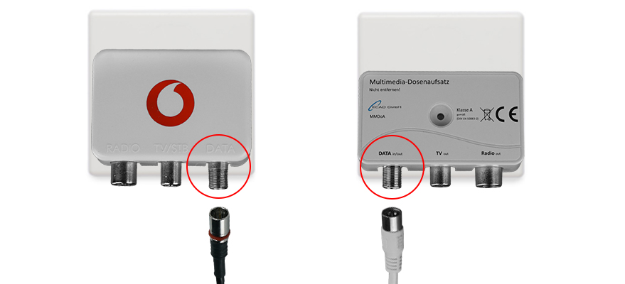 Mit einem Splitter an einer 3-Loch- oder Wisi-Click-Kabel-Dose