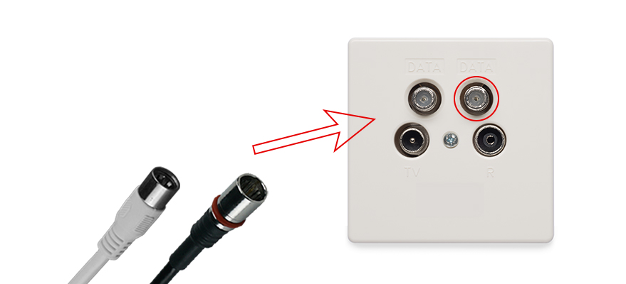 - Um ein Internetsignal an das Connect Box Modem zu übertragen, steck das KOAX-Kabel in den Kabel-Anschluss.