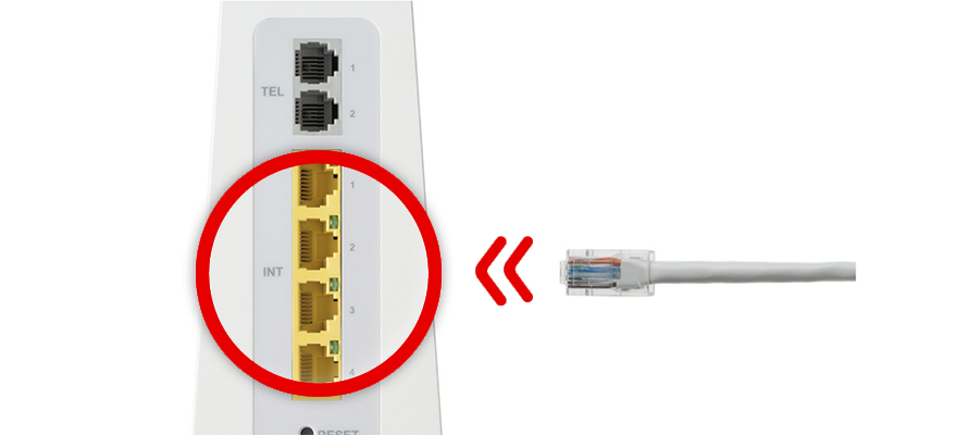 - Steck das LAN-Kabel in einen der Netzwerkanschlüsse auf der Rückseite Deiner Connect Box (INT 1-4).