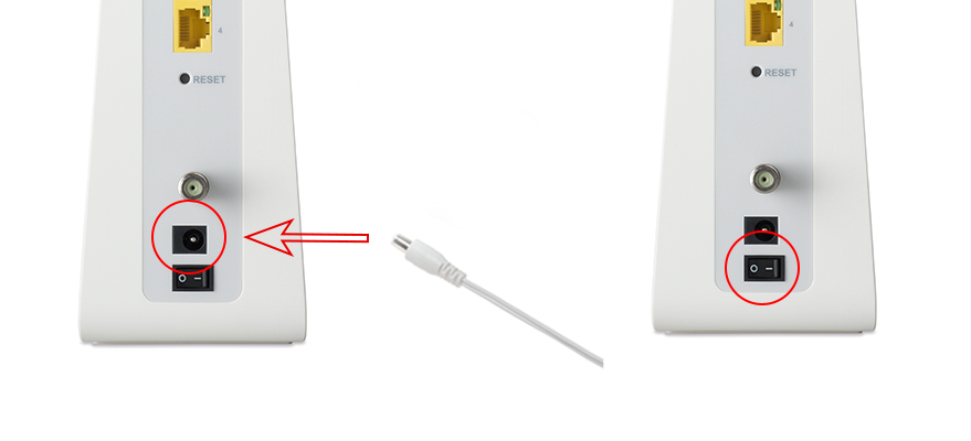- Um das Connect Box Modem einzuschalten, drück den Einschaltknopf auf der Rückseite des Connect Box Modems.