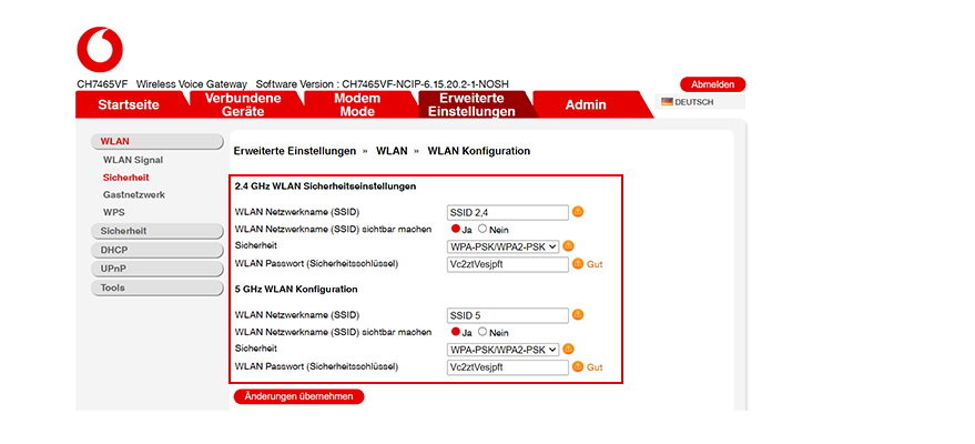 Wir empfehlen Dir, den Netzwerknamen (SSID) und das Standard-Passwort (Netzwerk-Sicherheitsschlüssel) zu ändern. So schützt Du Dein Netzwerk. Um den Netzwerknamen und das Passwort zu ändern, folg bitte den folgenden Schritten. Gut zu wissen: Falls Du zum ersten Mal auf Dein Modem zugreifst, musst Du weitere Schritte durchführen, bevor Du den Namen und das Passwort ändern kannst. Wenn Du Deinen Namen und Passwort vergessen hast, führ einen Werksreset durch.