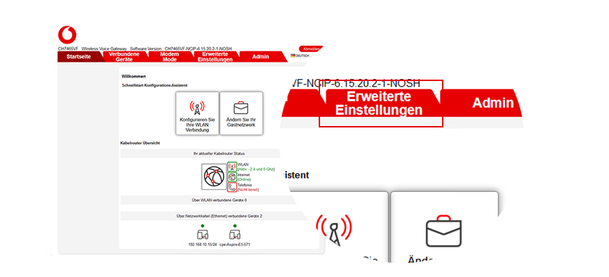 - Klick auf Erweiterte Einstellungen > WLAN > Gastnetzwerk.
