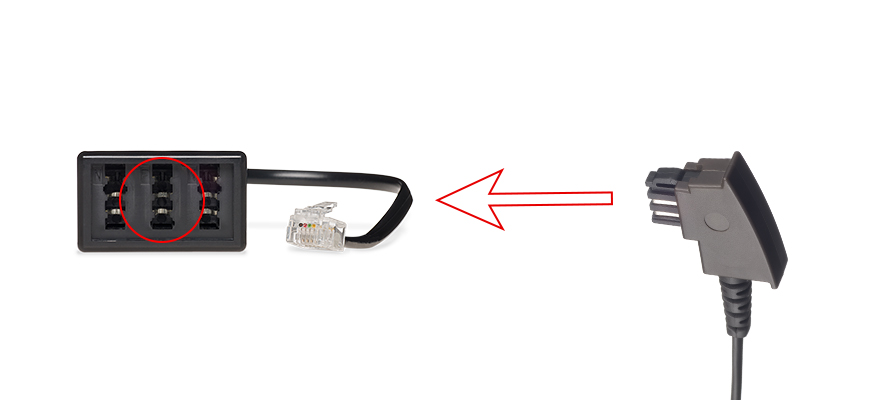 - Steck den Stecker Deines Telefons in den Anschluss TEL 1 Deiner Connect Box. Passt der Stecker nicht? Dann nutz den RJ11-TAE-Adapter.