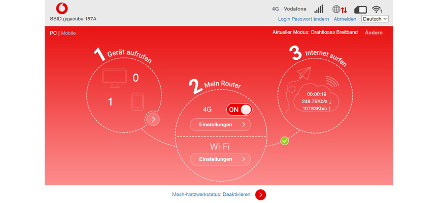 - Stell sicher, dass Dein GigaCube mit dem Internet verbunden ist.