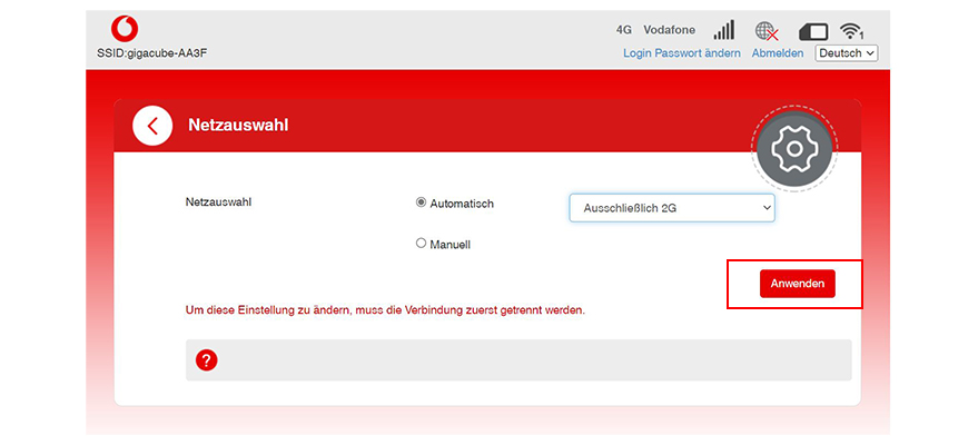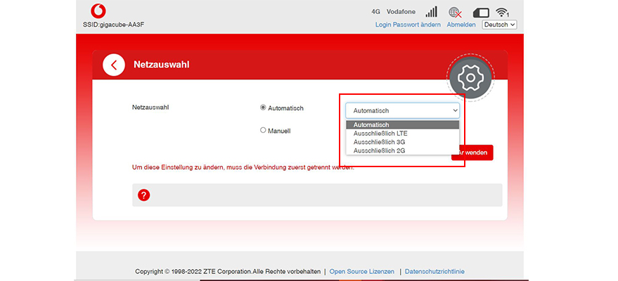 Du möchtest die Netzauswahl ändern? Geh dafür über die GigaCube-Web-Oberfläche.