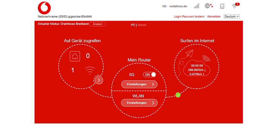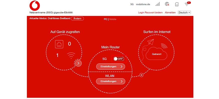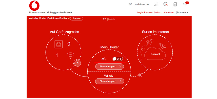 - Im Vodafone Center unter center.vodafone.de. Wichtig: Die Seite lässt sich nur öffnen, wenn Du über den GigaCube im Internet surfst.