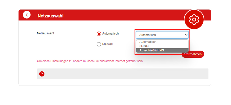 Du möchtest die Netzauswahl von Ausschließlich 4G auf 5G/4G ändern? Geh dafür über die GigaCube-Web-Oberfläche.