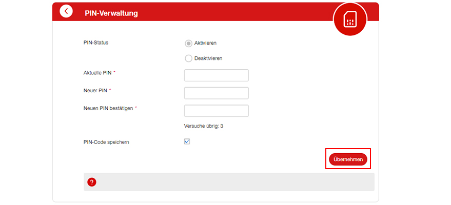 Gut zu wissen: Die PIN schützt Deine SIM-Karte vor unbefugter Nutzung. Ändere Deine PIN, um sie sich besser zu merken. Schalt die PIN-Nutzung ein, um die PIN zu ändern.