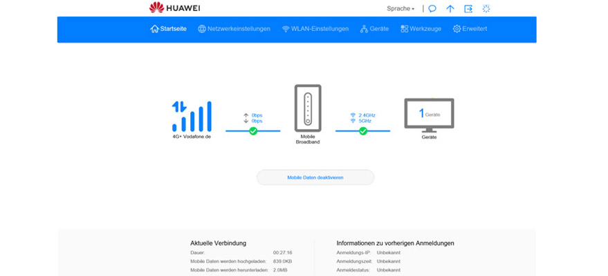 - Stell sicher, dass Dein GigaCube mit dem Internet verbunden ist.