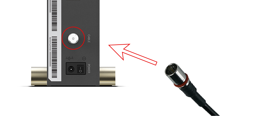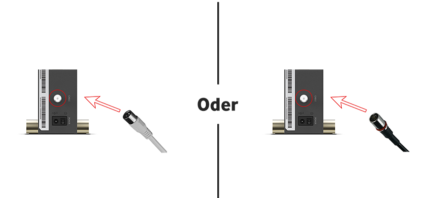 Um ein Internet-Signal an die Vodafone Station zu übertragen, steck das KOAX-Kabel in den Kabel-Anschluss.