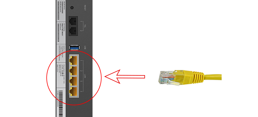 - Steck das LAN-Kabel in einen der Netzwerkanschlüsse auf der Rückseite Deiner Vodafone Station (LAN 1-4).