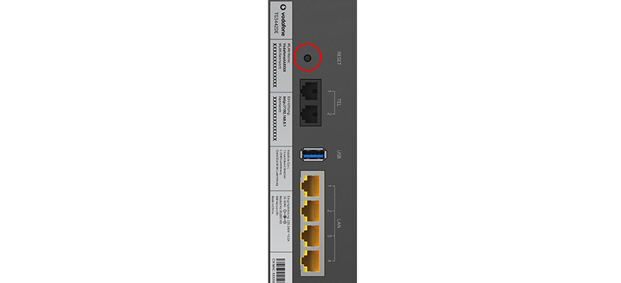 Halt die Taste RESET mit einem Stift mindestens 30 Sekunden lang gedrückt. Die Vodafone Station führt automatisch einen Reset und Neustart durch. Tipp: Nutz zum Drücken der Taste einen spitzen, nicht metallischen Gegenstand. Nach dem Zurücksetzen konfigurier das Modem wieder neu.