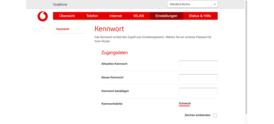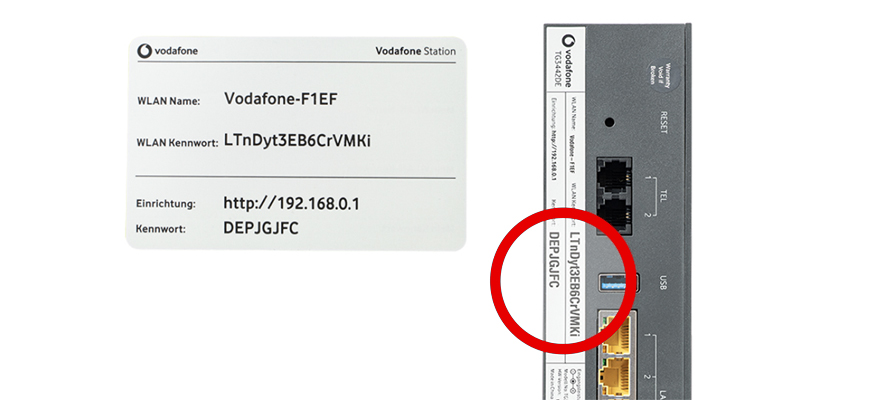 - Gib nun Dein Passwort ein. Du findest es auf der Rückseite Deiner Vodafone Station. Sowie auf der beiliegenden WLAN-Karte.