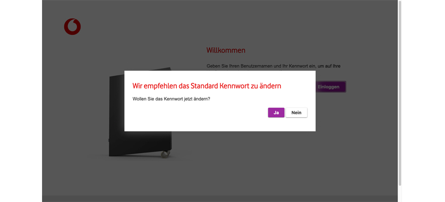 - Nach dem Einloggen wirst Du aufgefordert Dein Standard Kennwort zu ändern. Wähl Ja.