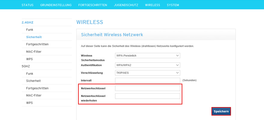 Wähl Speichern. Das Passwort Deine Modems wurde geändert.