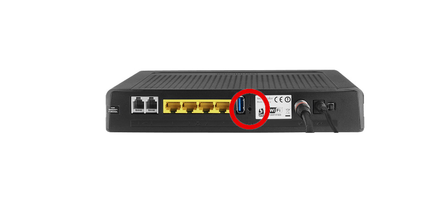 DC Eingang 12V/ 1.5A Kabeleingang: 1xCoaxial Kabelverbindung USB-Eingang: 1× 2.0 USB Verbindung Telefon-Buchsen: 2xRJ11 Ethernet Buchsen : 4xRJ-45 |