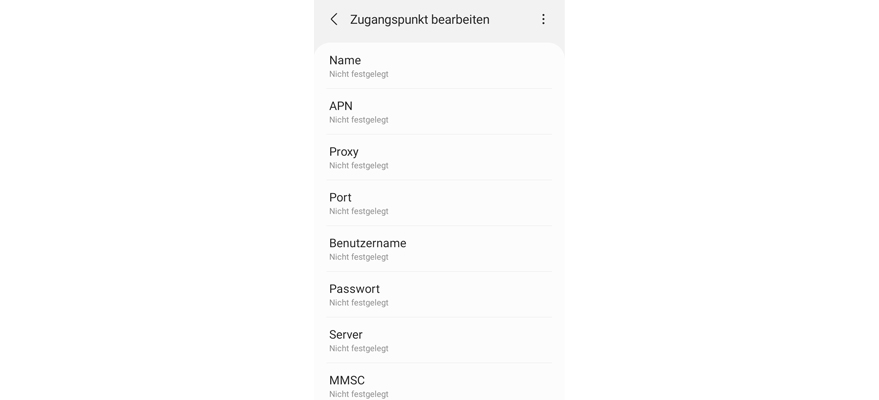 Name: Vodafone Internet APN: web.vodafone.de Proxy: Nicht festgelegt Port: Nicht festgelegt Benutzername: Nicht festgelegt Passwort: Nicht festgelegt Server: Nicht festgelegt MMSC: Nicht festgelegt MMS-Proxy: Nicht festgelegt MMS-Port: Nicht festgelegt MCC: 262 MNC: 02 Authentifizierungstyp: Ohne APN-Typ:default,supl,xcap APN-Protokoll: IPv4 APN-Roaming-Protokoll: IPv4 Übertragungsart: Nicht angegeben Typ des virtuellen Mobilfunknetzbetreibers: Keiner Wert des virtuellen Mobilfunknetzbetreibers: Nicht festgelegt