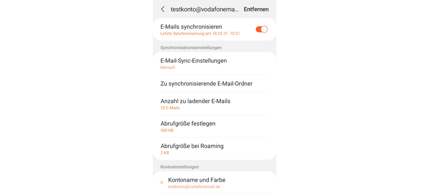 Optional: Änder bei Bedarf die Synchronisationseinstellungen über die E-Mail-Sync-Einstellungen.