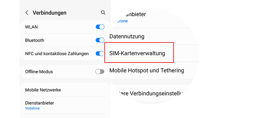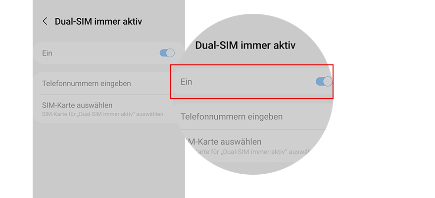 - Über den Schieberegler schaltest Du die SIM-Karte ein oder aus.
