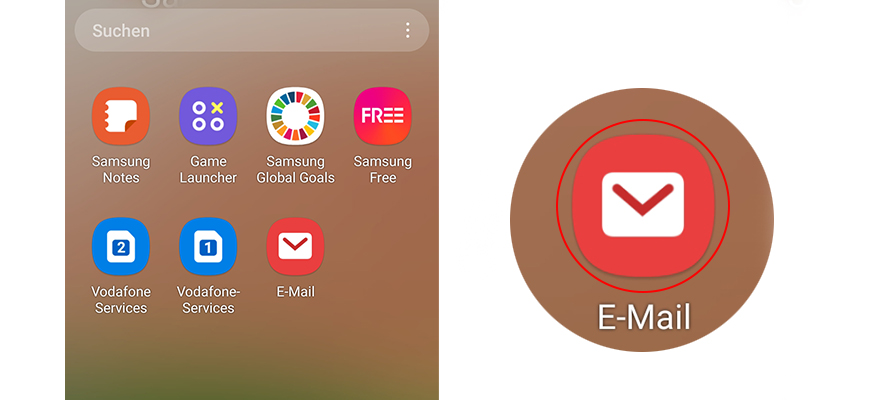 - Öffne den Galaxy Store. Such über die Lupe oben rechts nach Samsung Email. Lad die App Samsung Email herunter.