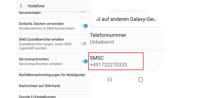 - Als SMSC-Nummer erscheint die +491722270333. Ist das nicht der Fall, gib diese Nummer bitte ein. Tipp dann auf OK, um die Eingabe zu speichern.