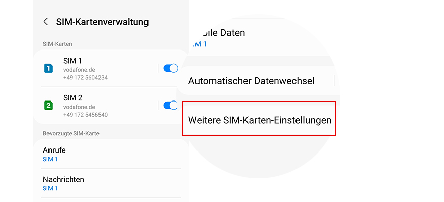 - Nutzt Du 2 SIM-Karten, dann wähl zuerst die SIM-Karte aus, um die Einstellungen zu ändern. Nutzt Du nur eine SIM-Karte, tipp auf Erweitert.
